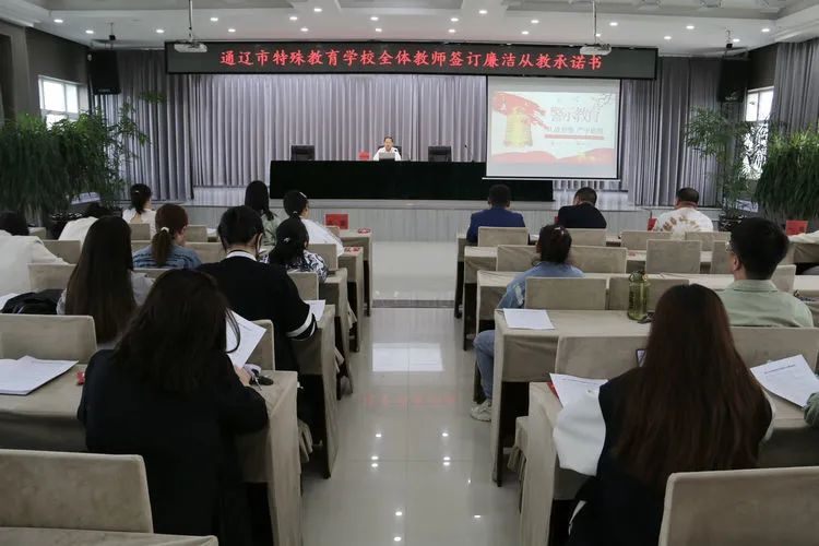 为贯彻落实党的二十大精神,深入推进“廉洁文化进校园”工作,进一步筑牢广大教师思想防线,加强师德师风建设,提高防腐拒变、廉洁从教能力,5月18日,通辽市特殊教育学校组织全体教师开展廉洁从教主题教育活动。
