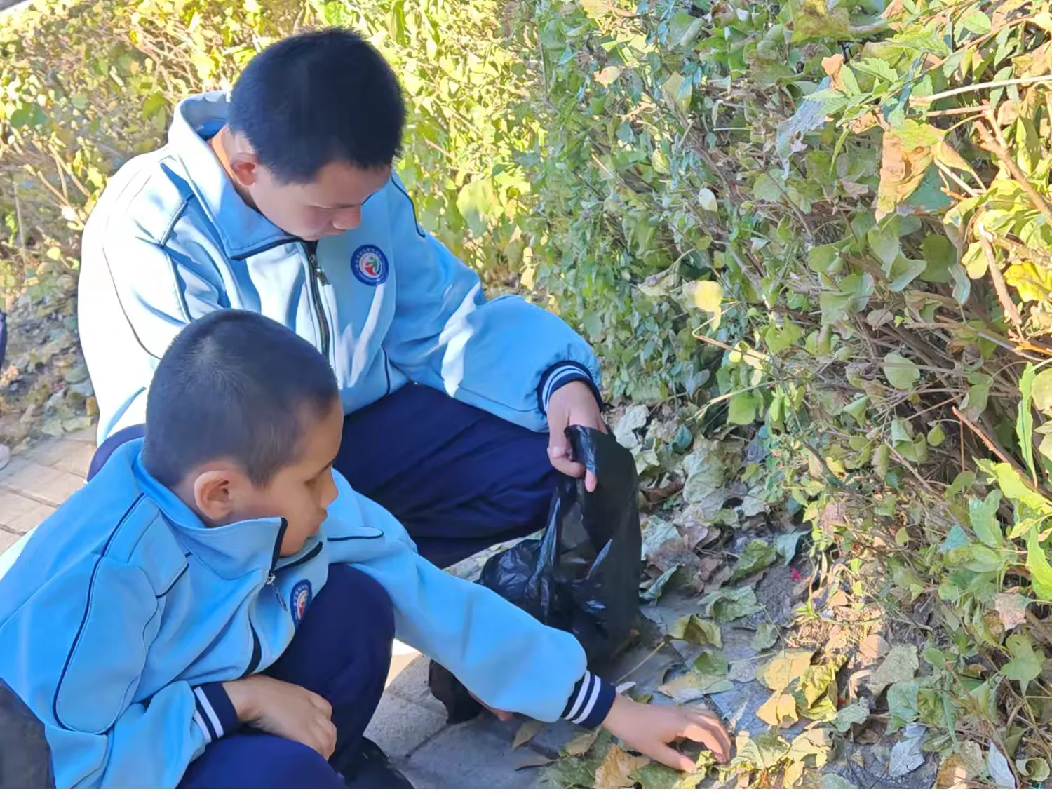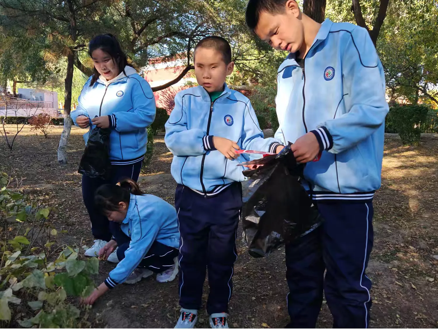 走在满是落叶的路上,老师耐心地给孩子们讲解了环保的重要性,告诉学生们从身边小事做起。随后同学们开展捡拾落叶活动,分工合作,积极参与,为环保贡献力量。捡起的树叶承载着对大自然的热爱和对美好环境的向往,他们用双手为地球添绿,让土地更美丽。